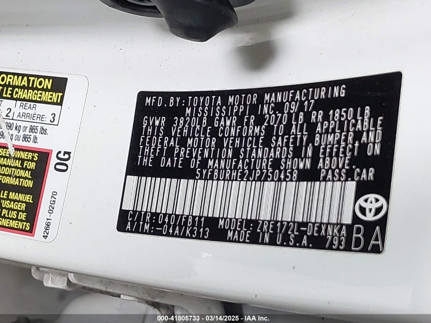 Color WhiteCylinders 4Drive Front wheel driveVIN 5YFBURHE2JP******State Run & Drive VerifiedDamage Right side AutoRIA