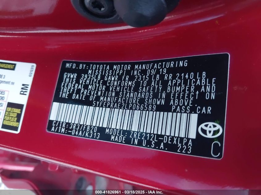 2020 TOYOTA COROLLA 2020 Gasoline, 1.8, Front wheel drive, VIN - 5YFEPRAE2LP****** from the USA