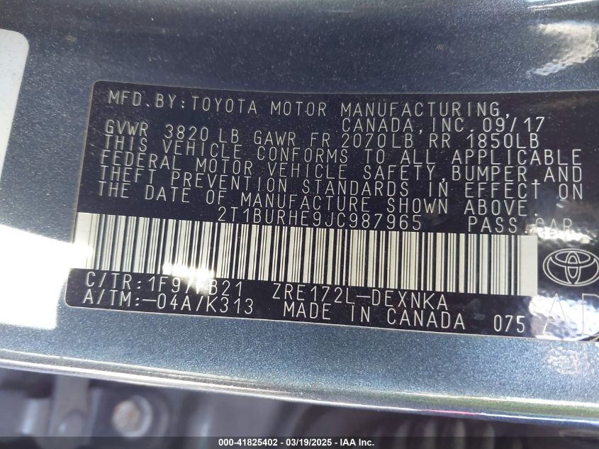 2018 TOYOTA COROLLA 2018 Gasoline, 1.8, Front wheel drive, VIN - 2T1BURHE9JC****** from the USA
