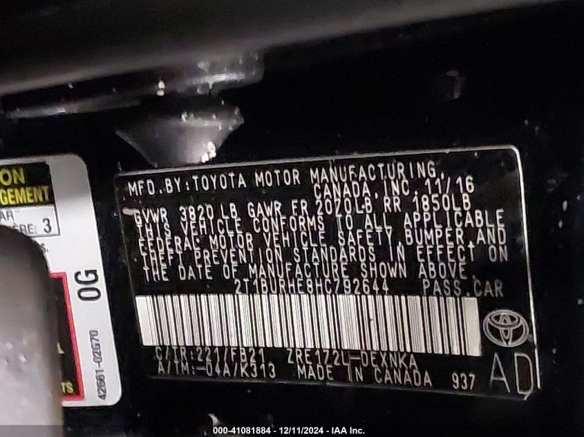 2017 TOYOTA COROLLA 2017 Gasoline, 1.8, Front wheel drive, VIN - 2T1BURHE8HC****** from the USA