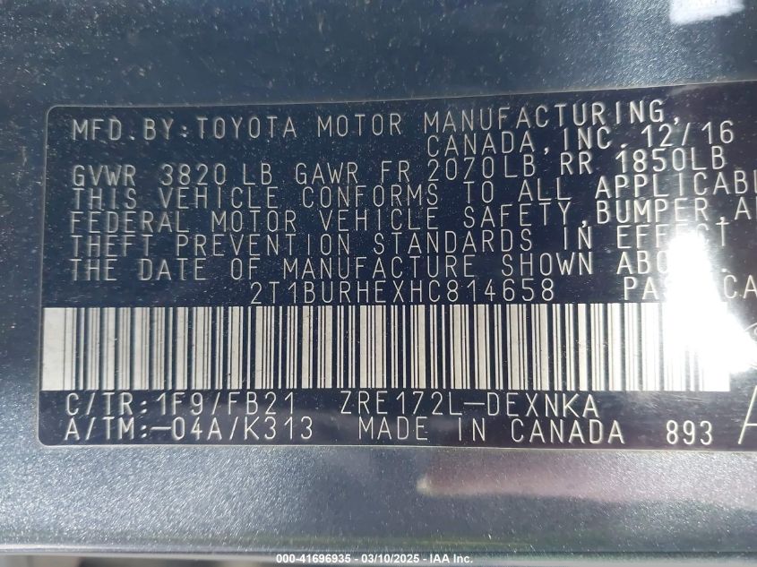 2017 TOYOTA COROLLA 2017 Gasoline, 1.8, Front wheel drive, VIN - 2T1BURHEXHC****** from the USA