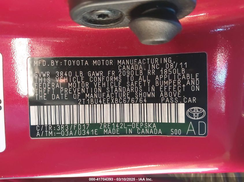 2011 TOYOTA COROLLA 2011 Gasoline, 1.8, Front wheel drive, VIN - 2T1BU4EEXBC****** from the USA