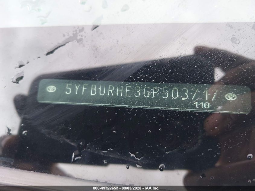 Color BlackCylinders 4Drive Front wheel driveVIN 5YFBURHE3GP******State Run & Drive VerifiedDamage Front and back AutoRIA
