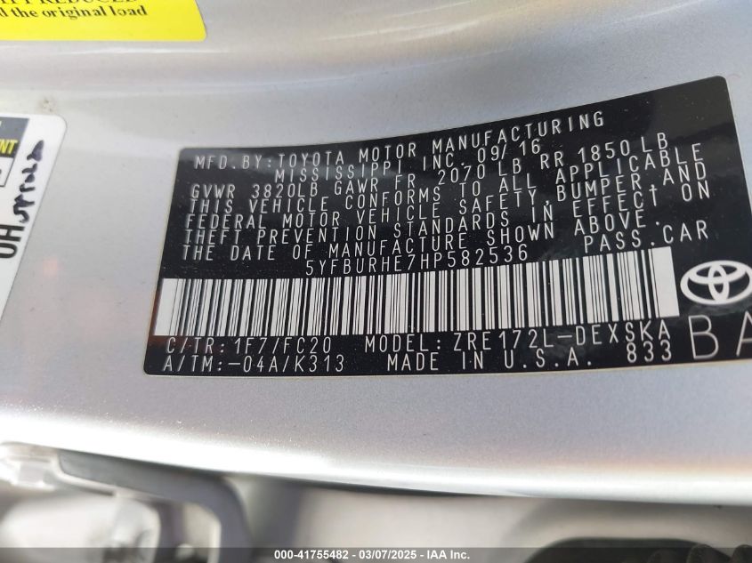 2017 TOYOTA COROLLA 2017 Gasoline, 1.8, Front wheel drive, VIN - 5YFBURHE7HP****** from the USA
