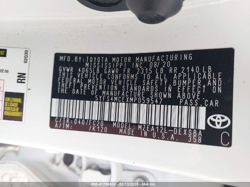2021 TOYOTA COROLLA 2021 Gasoline, 2.0, Front wheel drive, VIN - 5YFS4MCEXMP****** from the USA