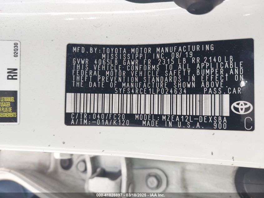 2020 TOYOTA COROLLA 2020 Gasoline, 2.0, Front wheel drive, VIN - 5YFS4RCE1LP****** from the USA