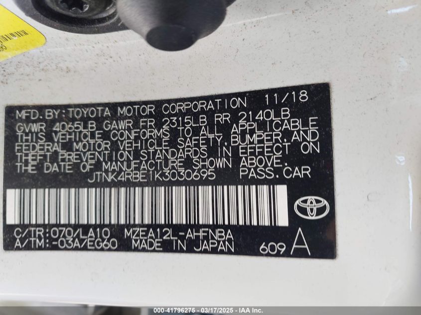 2019 TOYOTA COROLLA 2019 Gasoline, 2.0, Front wheel drive, VIN - JTNK4RBE1K3****** from the USA