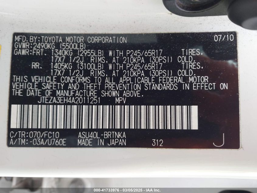 Color WhiteCylinders 4Drive Front wheel driveVIN JTEZA3EH4A2******State Run & Drive VerifiedDamage Front and back AutoRIA