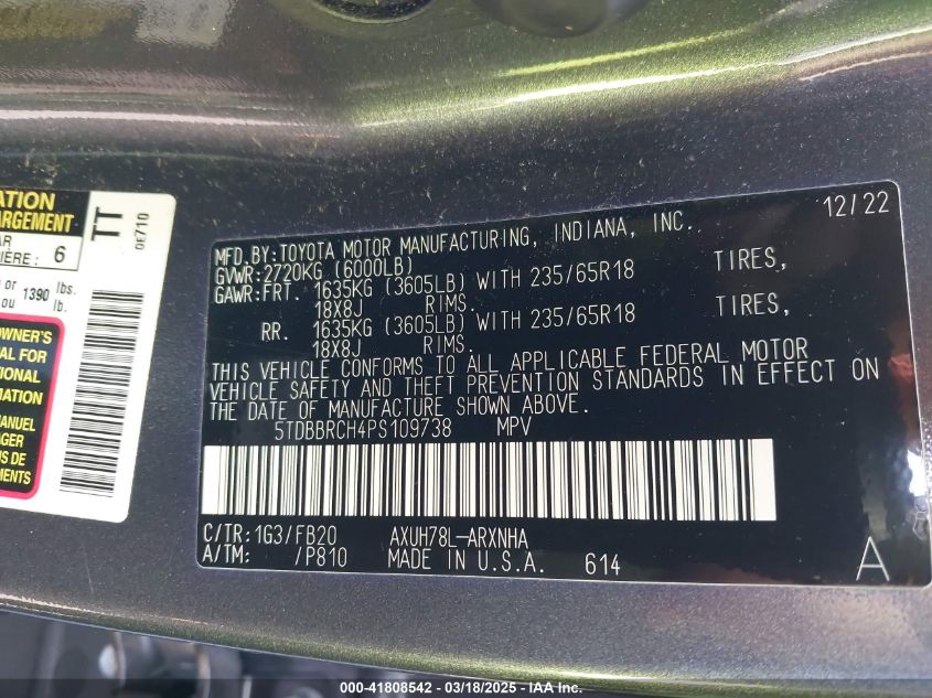 2023 TOYOTA HIGHLANDER 2023 Hybrid, 2.5, Full drive, VIN - 5TDBBRCH4PS****** from the USA