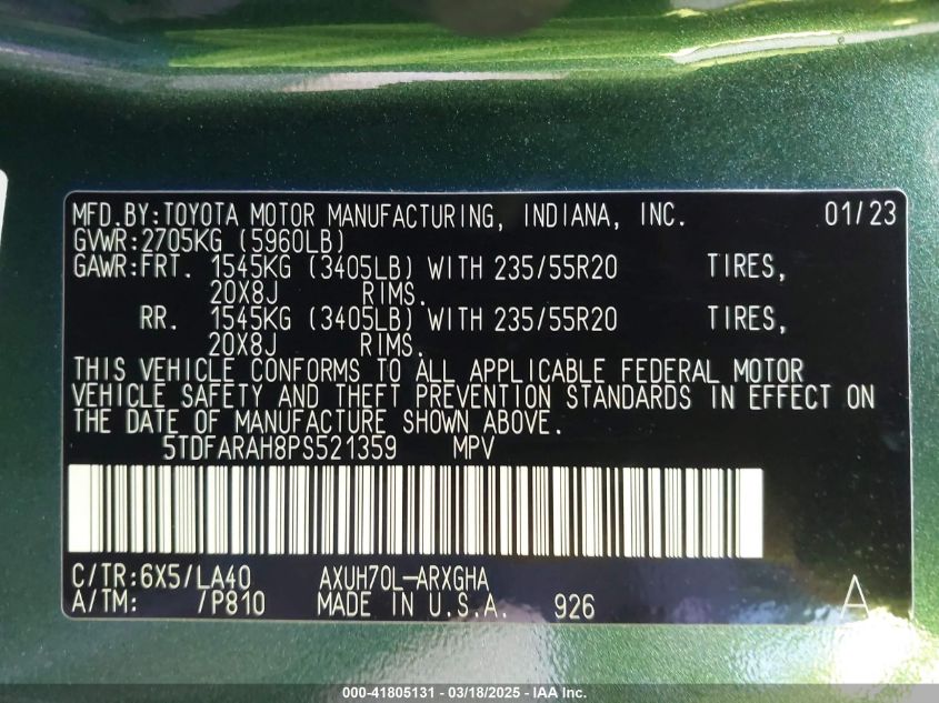 2023 TOYOTA HIGHLANDER 2023 Hybrid, 2.5, Front wheel drive, VIN - 5TDFARAH8PS****** from the USA
