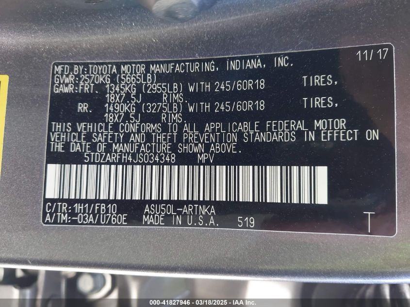 2018 TOYOTA HIGHLANDER 2018 Gasoline, 2.7, Front wheel drive, VIN - 5TDZARFH4JS****** from the USA