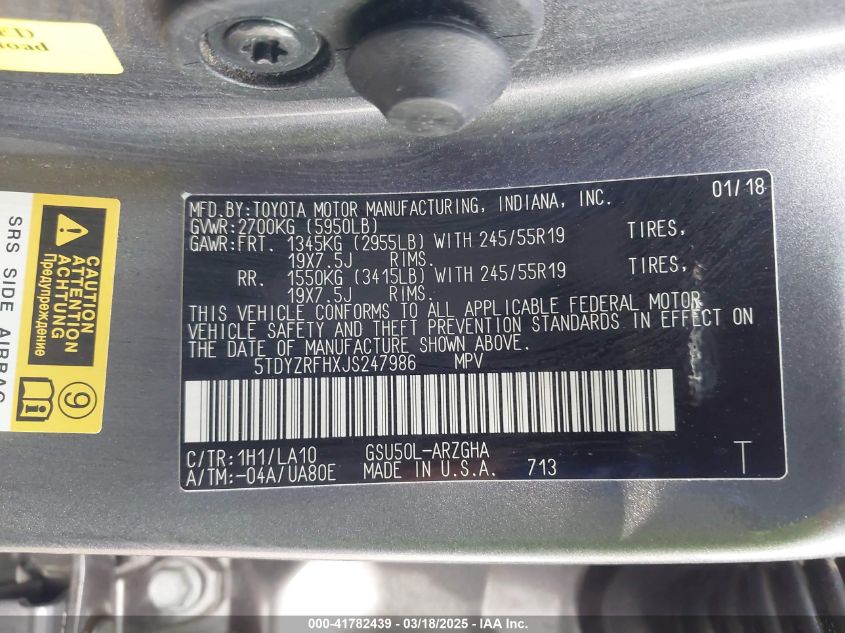 2018 TOYOTA HIGHLANDER 2018 Gasoline, 3.5, Front wheel drive, VIN - 5TDYZRFHXJS****** from the USA