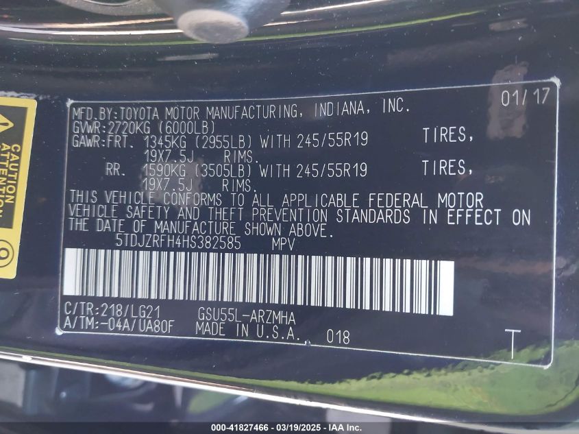 2017 TOYOTA HIGHLANDER 2017 Gasoline, 3.5, Full drive, VIN - 5TDJZRFH4HS****** from the USA