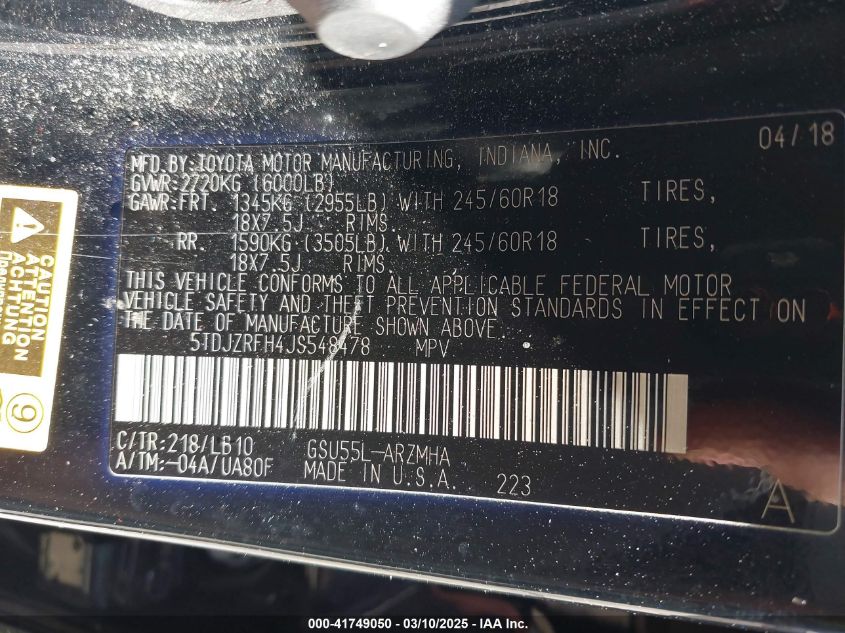 2018 TOYOTA HIGHLANDER 2018 Gasoline, 3.5, Full drive, VIN - 5TDJZRFH4JS****** from the USA
