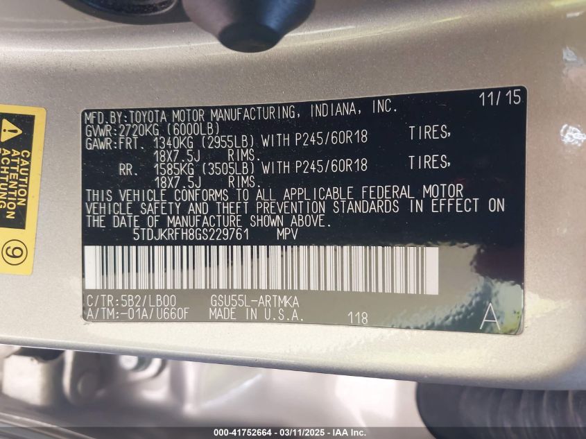 Color SunburnCylinders 6Drive Full driveVIN 5TDJKRFH8GS******State Run & Drive VerifiedDamage Due to bad weather AutoRIA