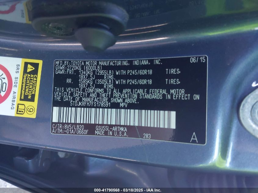 2015 TOYOTA HIGHLANDER 2015 Gasoline, 3.5, Full drive, VIN - 5TDJKRFH7FS****** from the USA