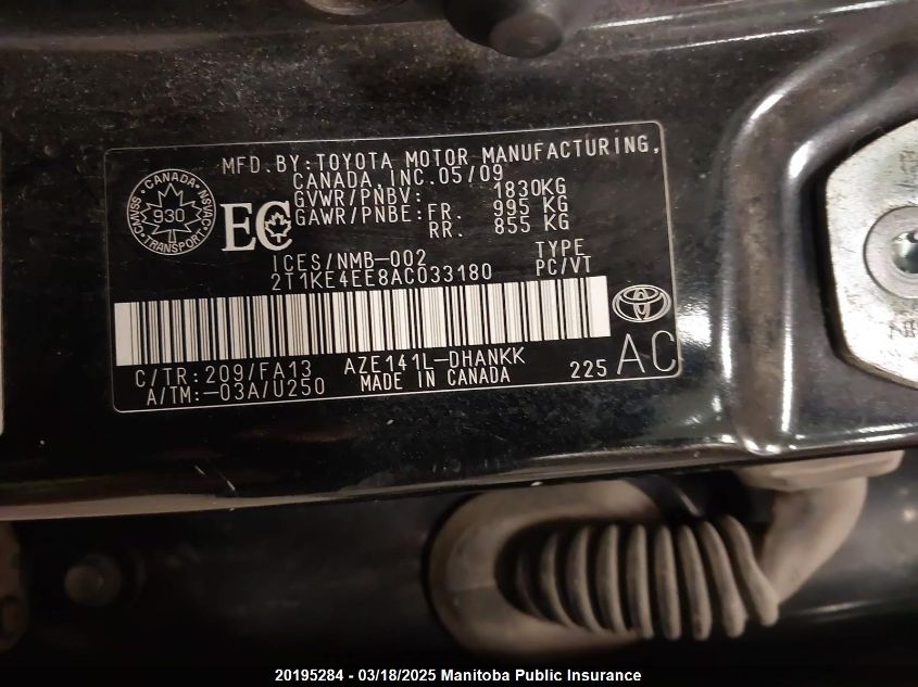 2010 TOYOTA MATRIX 2010 Gasoline, , Unknown, VIN - 2T1KE4EE8AC****** from the USA