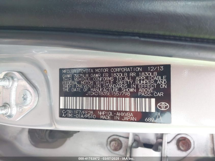 2014 TOYOTA PRIUS C 2014 Hybrid, 1.5, Front wheel drive, VIN - JTDKDTB35E1****** from the USA