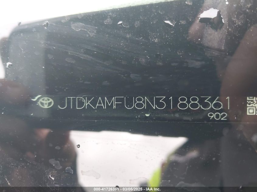 Color BlackCylinders 4Drive Front wheel driveVIN JTDKAMFU8N3******State Run & Drive VerifiedDamage Left side AutoRIA