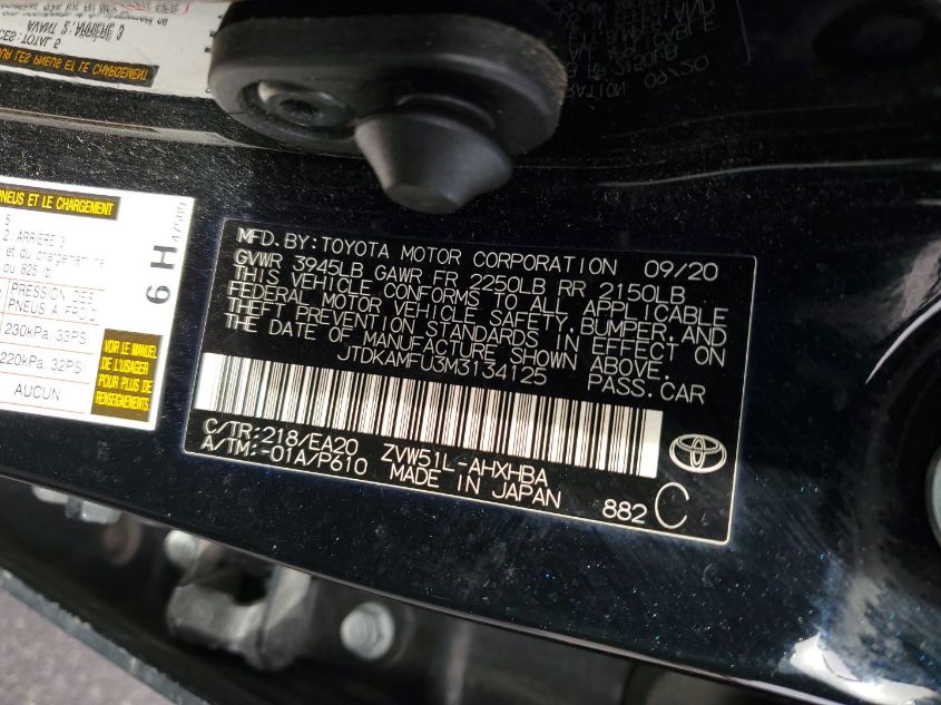Color Cylinders 4Drive Front wheel driveVIN JTDKAMFU3M3******State Run & Drive VerifiedDamage InsignificantAuction date 2025-06-01 AutoRIA