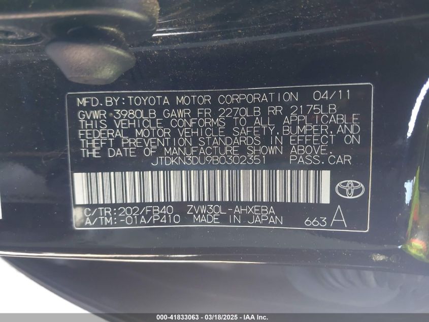 Color BlackCylinders 4Drive Front wheel driveVIN JTDKN3DU9B0******State Run & Drive VerifiedDamage Front or back AutoRIA
