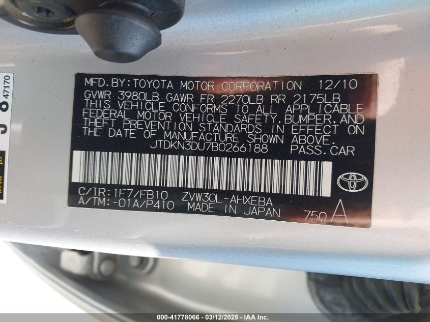 Color SilverCylinders 4Drive Front wheel driveVIN JTDKN3DU7B0******State Run & Drive VerifiedDamage InsignificantAuction date 2025-03-20 AutoRIA