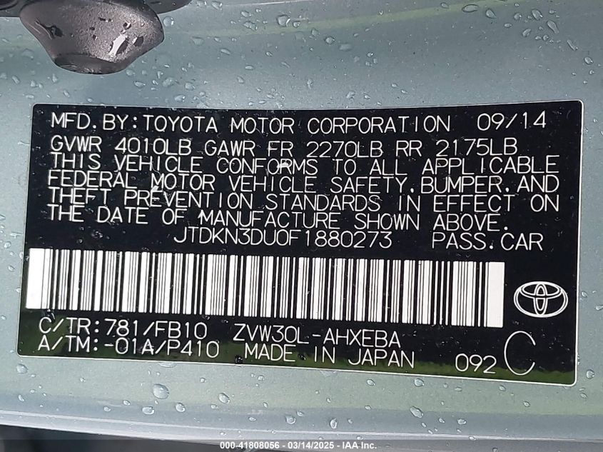 Color BlueCylinders 4Drive Front wheel driveVIN JTDKN3DU0F1******State Run & Drive VerifiedDamage Front or back AutoRIA