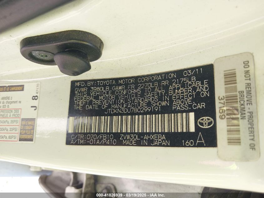 Color WhiteCylinders 4Drive Front wheel driveVIN JTDKN3DU7B0******State Run & Drive VerifiedDamage Bio/Chemical AutoRIA