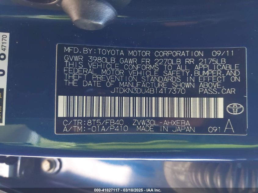 2011 TOYOTA PRIUS 2011 Hybrid, 1.8, Front wheel drive, VIN - JTDKN3DU4B1****** from the USA