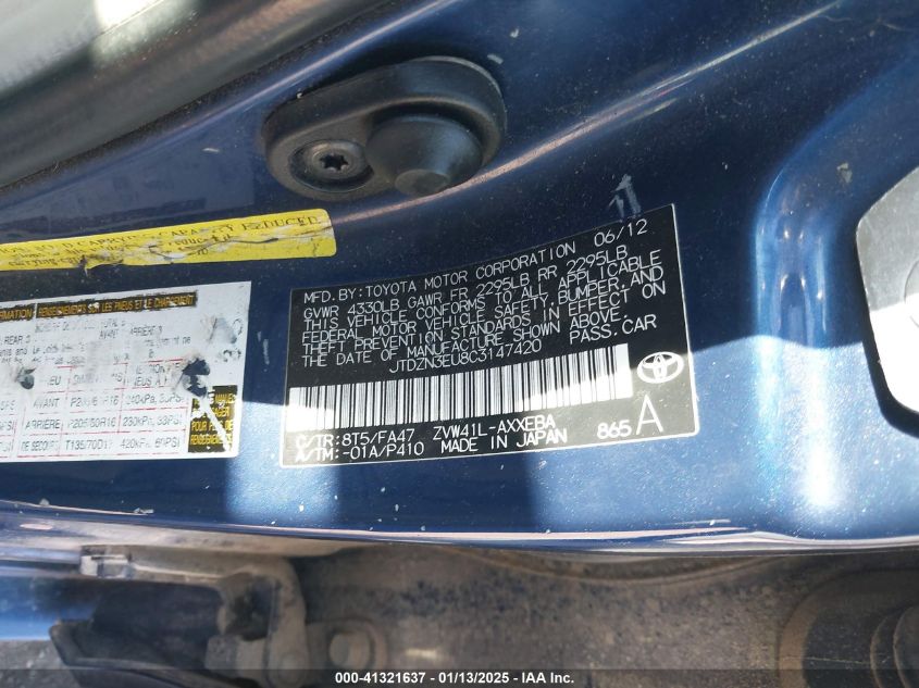 Color BlueCylinders 4Drive Front wheel driveVIN JTDZN3EU8C3******State Run & Drive VerifiedDamage Front or back AutoRIA