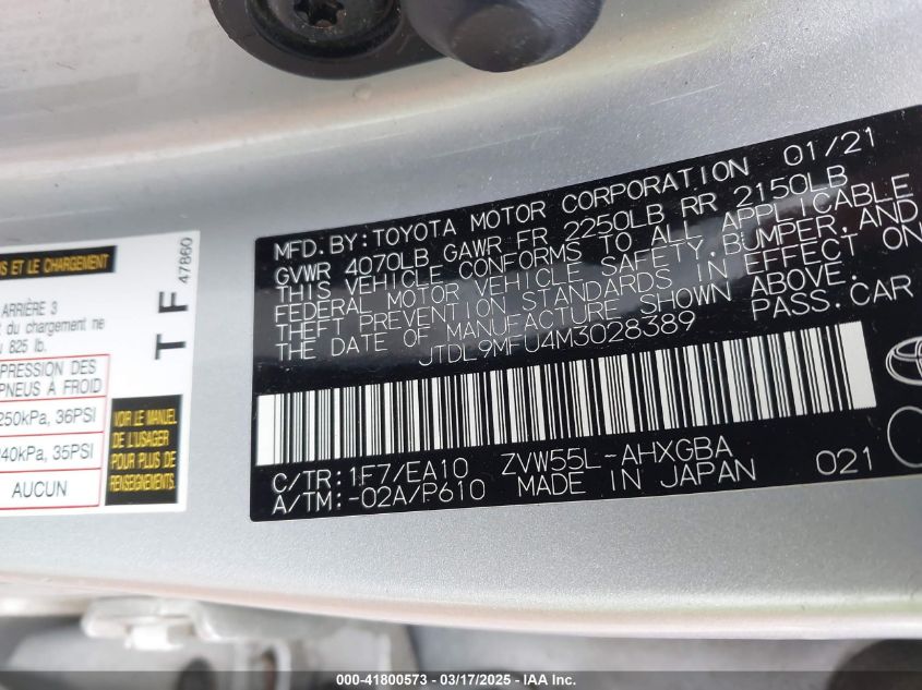 2021 TOYOTA PRIUS 2021 Hybrid, 1.8, Full drive, VIN - JTDL9MFU4M3****** from the USA