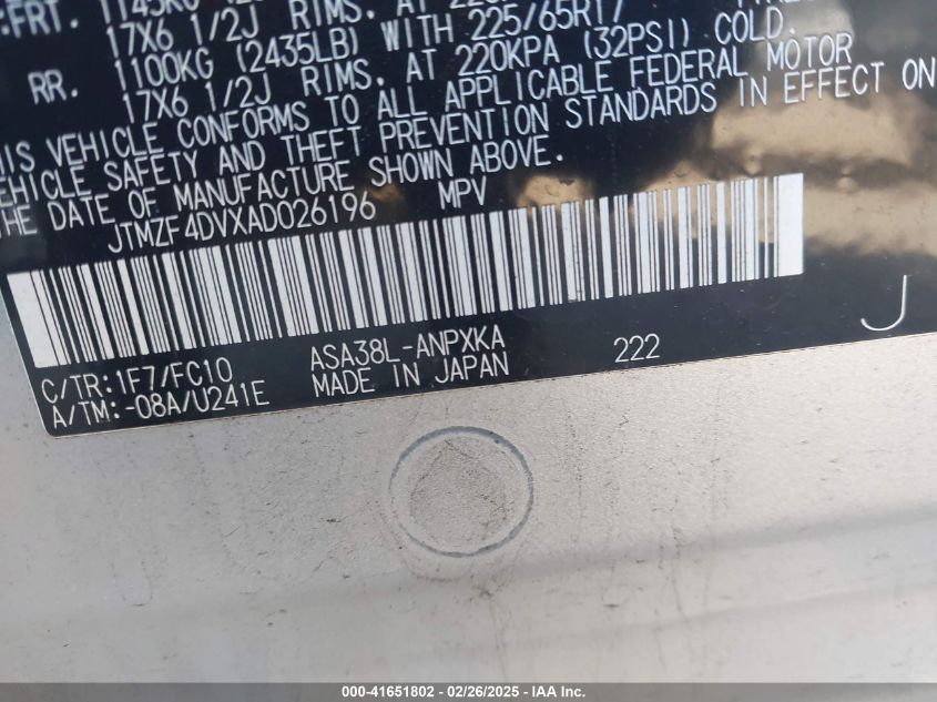 Color SilverCylinders 4Drive Front wheel driveVIN JTMZF4DVXAD******State Run & Drive VerifiedDamage Front or back AutoRIA