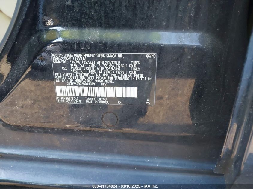 2010 TOYOTA RAV4 2010 Gasoline, 2.5, Front wheel drive, VIN - 2T3ZF4DVXAW****** from the USA