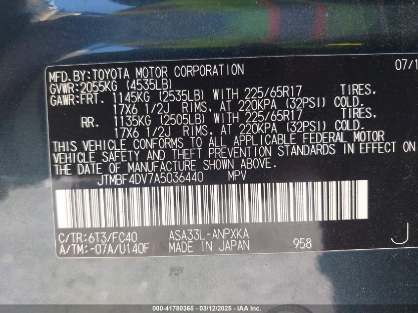 Color GreenCylinders 4Drive Full driveVIN JTMBF4DV7A5******State Run & Drive VerifiedDamage Back AutoRIA
