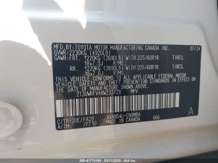 2024 TOYOTA RAV4 HYBRID 2024 Hybrid, 2.5, Full drive, VIN - 2T3UWRFV4RW****** from the USA