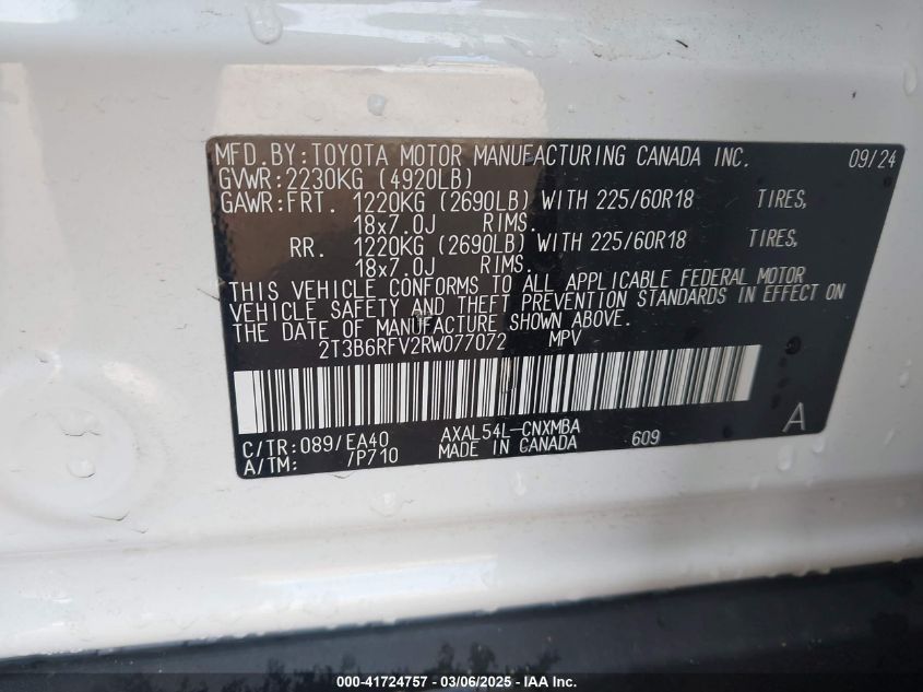 2024 TOYOTA RAV4 HYBRID 2024 Hybrid, 2.5, Full drive, VIN - 2T3B6RFV2RW****** from the USA
