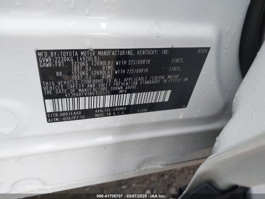 2024 TOYOTA RAV4 HYBRID 2024 Hybrid, 2.5, Full drive, VIN - 4T3B6RFV9RU****** from the USA