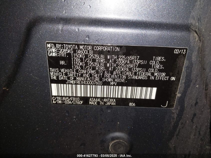2013 TOYOTA RAV4 2013 Gasoline, 2.5, Full drive, VIN - JTMBFREV4DD****** from the USA