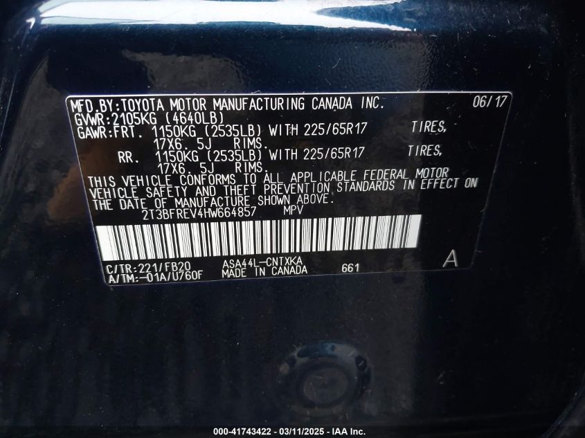 2017 TOYOTA RAV4 2017 Gasoline, 2.5, Full drive, VIN - 2T3BFREV4HW****** from the USA