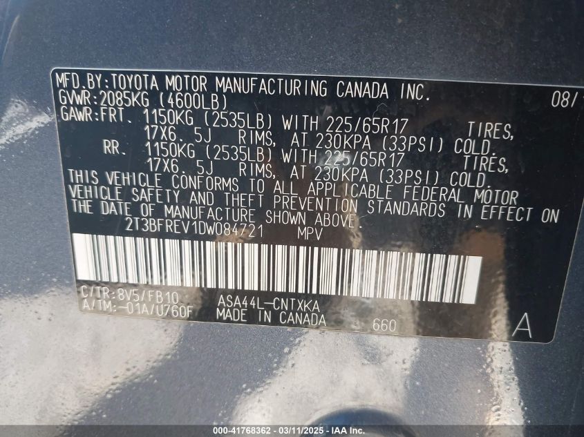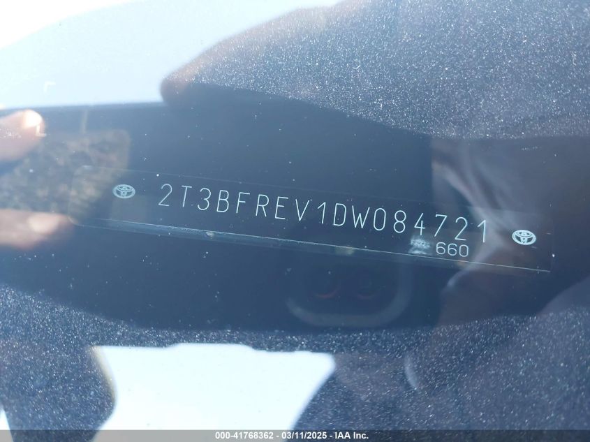 Color BlueCylinders 4Drive Full driveVIN 2T3BFREV1DW******State Run & Drive VerifiedDamage BackAuction date 2025-03-25 AutoRIA