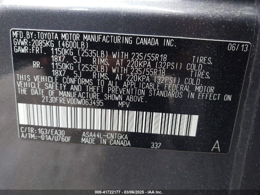 2013 TOYOTA RAV4 2013 Gasoline, 2.5, Full drive, VIN - 2T3DFREV0DW****** from the USA