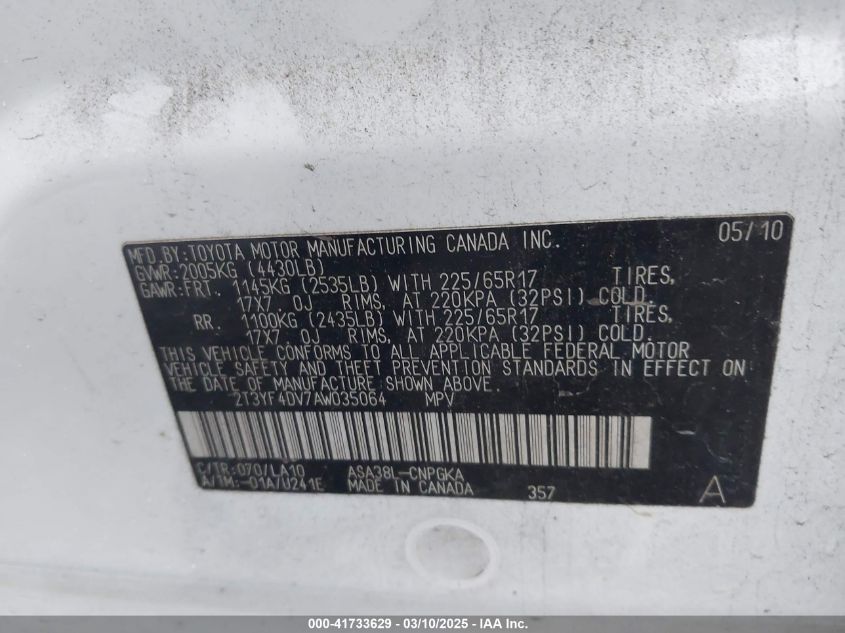 Color WhiteCylinders 4Drive Front wheel driveVIN 2T3YF4DV7AW******State Run & Drive VerifiedDamage From the sides AutoRIA