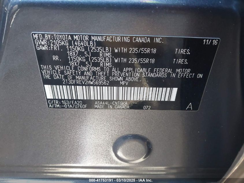 2017 TOYOTA RAV4 2017 Gasoline, 2.5, Full drive, VIN - 2T3DFREV2HW****** from the USA