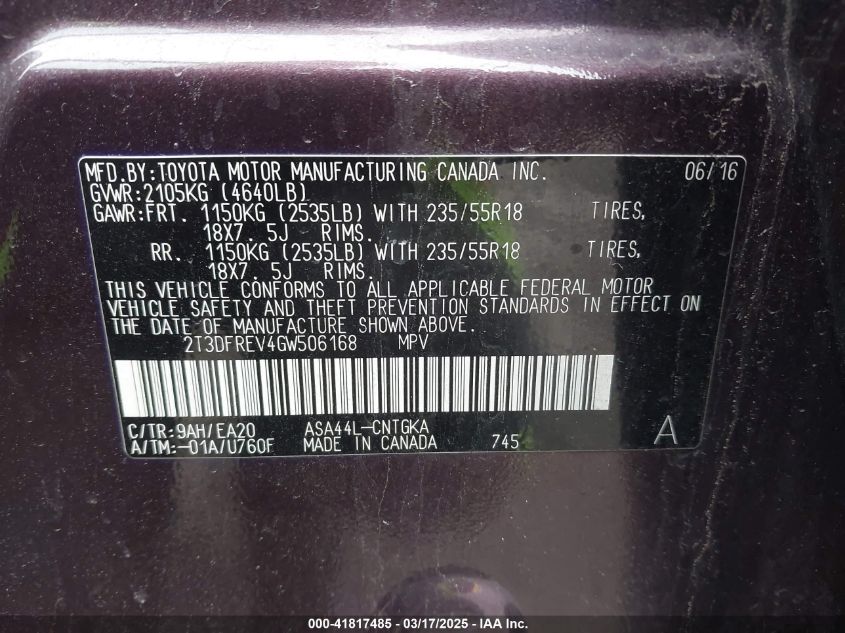 2016 TOYOTA RAV4 2016 Gasoline, 2.5, Full drive, VIN - 2T3DFREV4GW****** from the USA