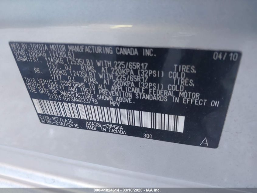 2010 TOYOTA RAV4 2010 Gasoline, 2.5, Front wheel drive, VIN - 2T3YF4DV9AW****** from the USA