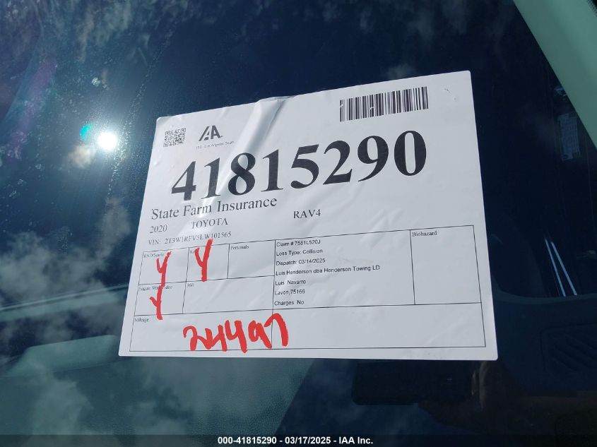2020 TOYOTA RAV4 2020 Gasoline, 2.5, Front wheel drive, VIN - 2T3W1RFV5LW****** from the USA