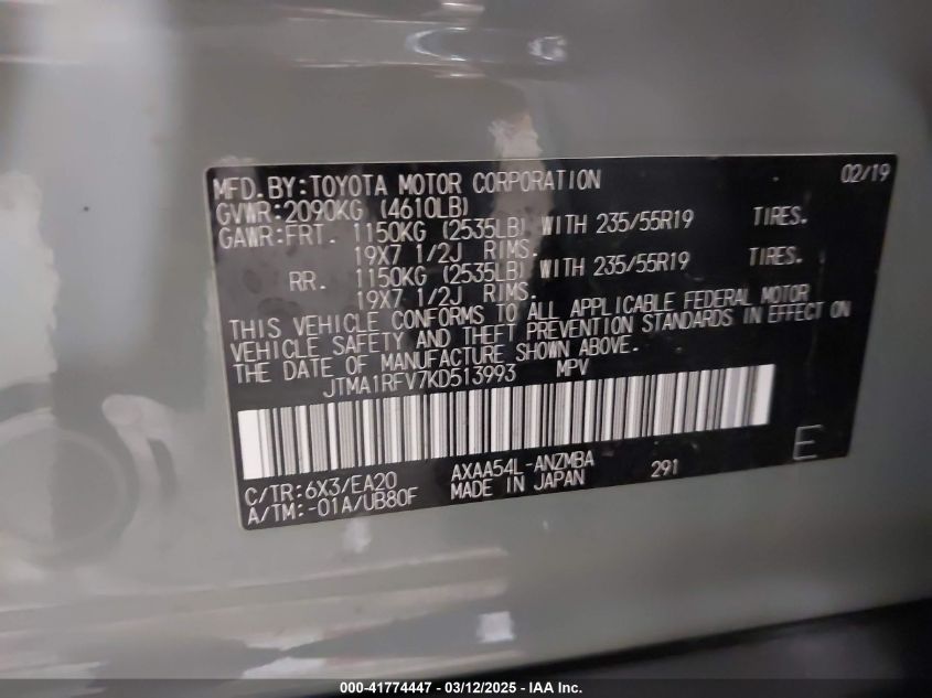 2019 TOYOTA RAV4 2019 Gasoline, 2.5, Full drive, VIN - JTMA1RFV7KD****** from the USA