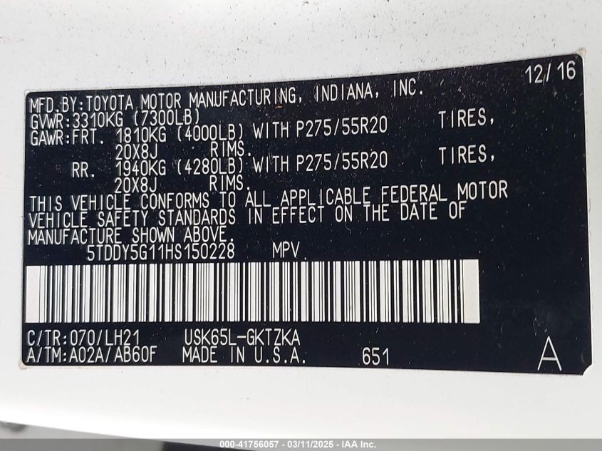 2017 TOYOTA SEQUOIA 2017 Gasoline, 5.7, Full drive, VIN - 5TDDY5G11HS****** from the USA