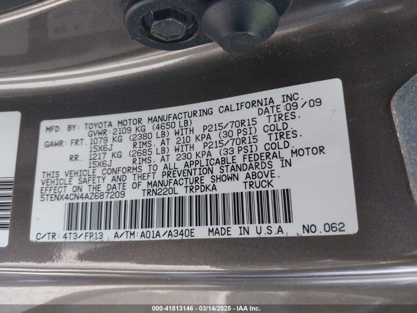 2010 TOYOTA TACOMA 2010 Gasoline, 2.7, Unknown, VIN - 5TENX4CN4AZ****** from the USA