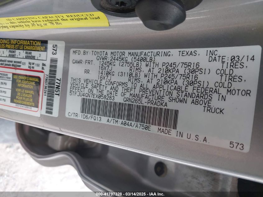 Color GrayCylinders 6Drive UnknownVIN 5TFJU4GN7EX******State Run & Drive VerifiedDamage Front or back AutoRIA